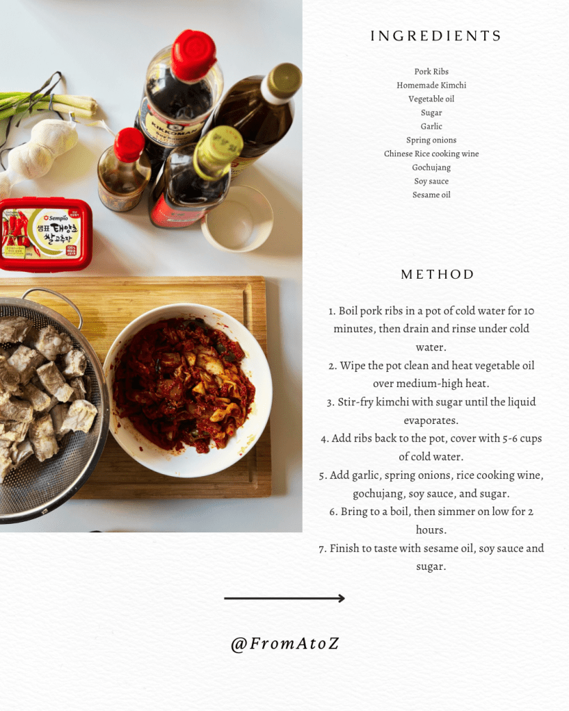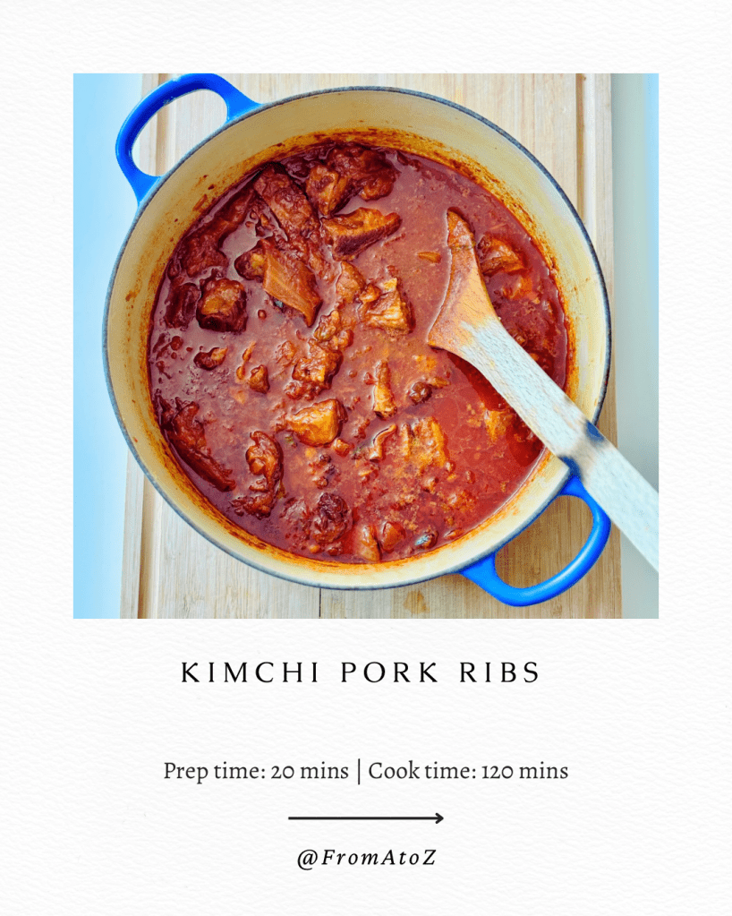 What makes this version even closer to our hearts is that it’s made with our own homemade kimchi. The slow simmer brings out all the fermented, spicy, and tangy flavors of the kimchi, which melt perfectly into the sauce and coat the ribs beautifully. Over two hours, the pork becomes tender and juicy while the broth thickens into a bold, comforting stew.
