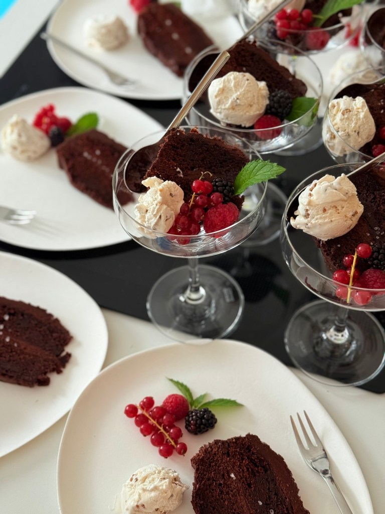 Add a scoop of vanilla or salted caramel ice cream for contrast with the rich cake.